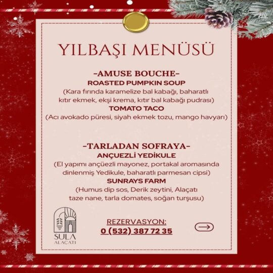 Lütfen fiyat teklif alınız.Sula Alaçatı, Çeşme Yılbaşı Mekanları 2026